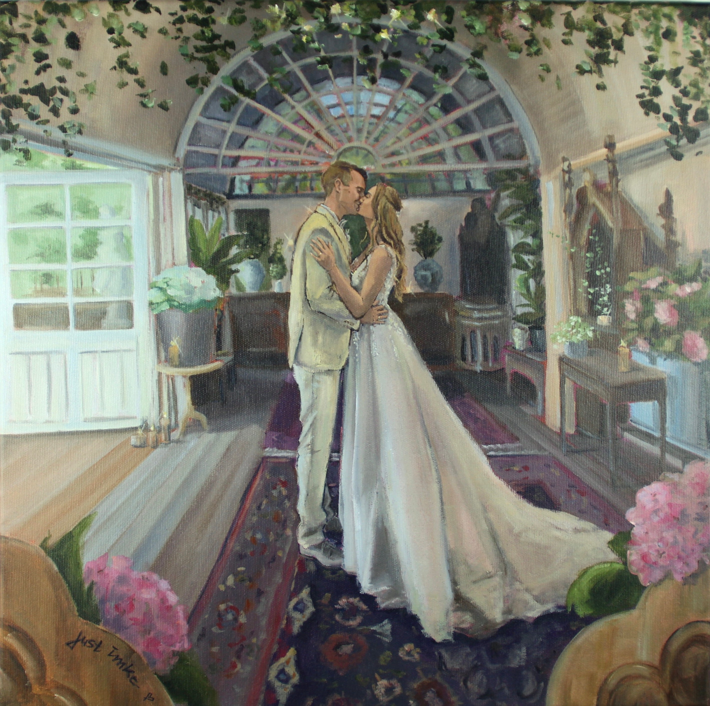 Ob romantisch im Freien, in einer Kirche oder an einer einzigartigen Hochzeitslocation – meine Hochzeitsmalerei ist ein Unikat, das euch ein Leben lang an diesen unvergesslichen Tag erinnert.